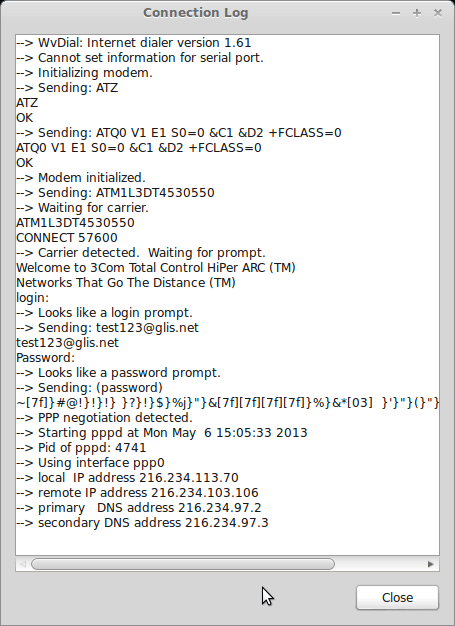 While it's connecting you can veiw the "Connection Log" by clicking on the Log button.