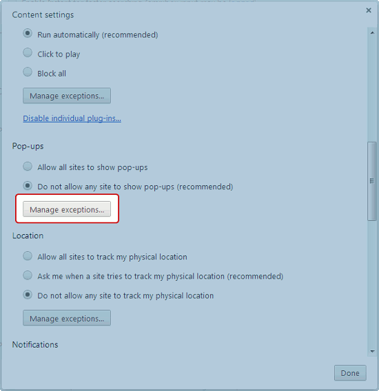 Adding Exception Rules to Chrome's Pop-Up Blocker