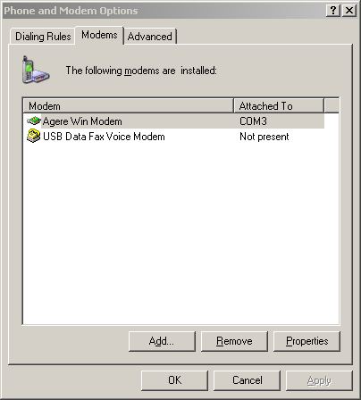 In "Phone and Modem Options" click on the