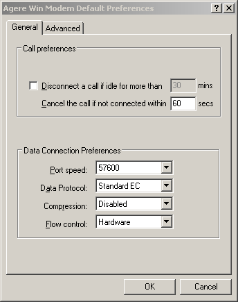 Enable error correction and compression in modem.