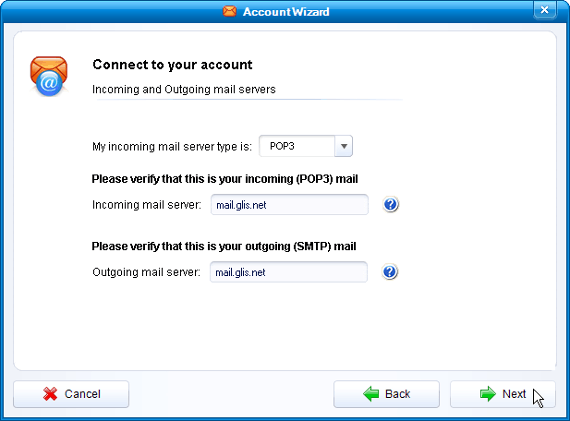 POP3Incoming mail server: