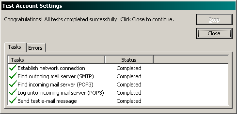 Remove 25 and type in 587.If you are connected to the internet at the moment you can click the Test Account Settings... button. It will pop-up a window shown below. If there was anything wrong, It would of instructed you on where to correct the problem.