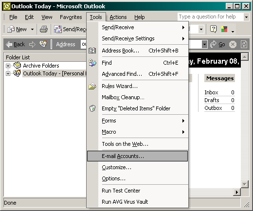 Click on Tools / E-mail Accounts...